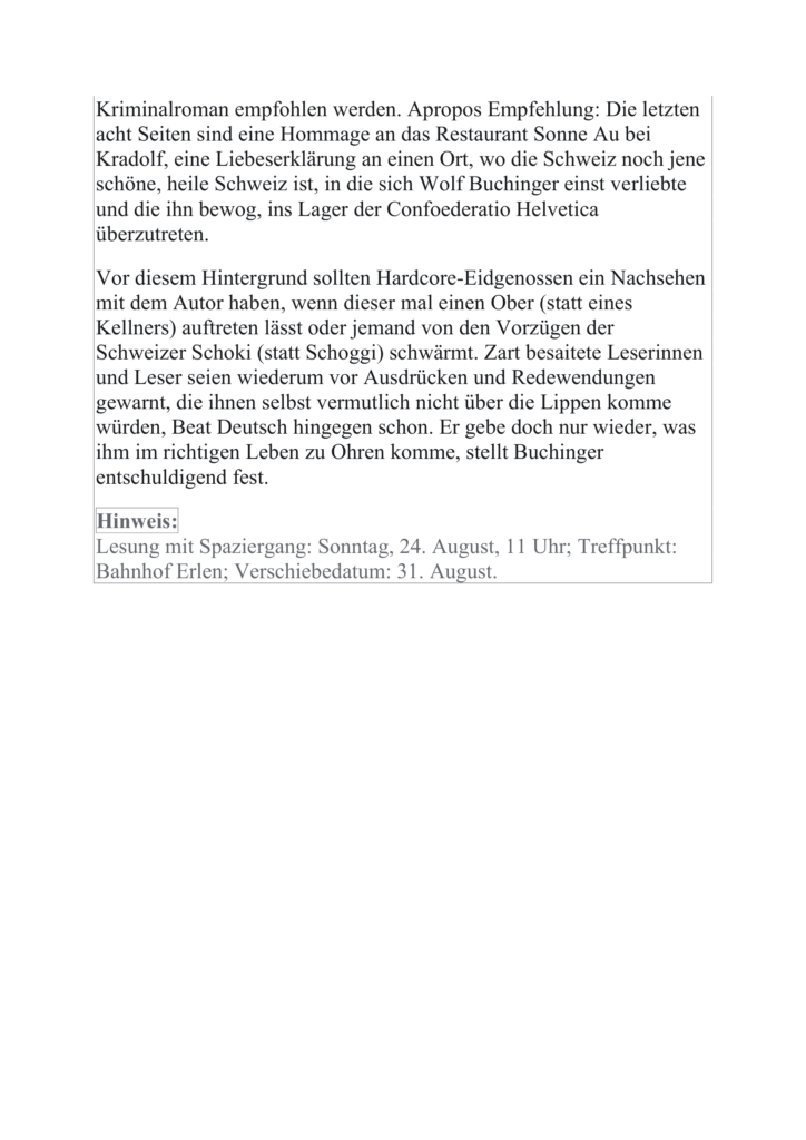 Am 28.12.23 las Wolf einiges aus dem ersten Vierteljahrhundert seines Lebens, das er als Hansdampf in allen Gassen Waldmohrs verbracht hat, und auch Texte zu dieser Zeit aus seinem Buch „Blechschüssel und Busen“. Natürlich stand die Musik mit Inga in nichts nach, z.B. mit dem „Satellitenwalzer“, den er Anfang der 60er Jahre getextet und komponiert hat. Wenn wir schon so weit fahren, dann wollten wir das auch ausnutzen mit einem Konzert prallvoll mit Evergreens im „Haus am Schachenwald“ am 27.12. und am 29.12. rundeten wir die Tournée ab mit Texten über unsere Erlebnisse in der Schweiz. Auch hier gab es Erzählungen, Texte aus dem Buch „Ich bin jetzt in der Schweiz“ und Liedern wie der Einbürgerungs-Song (unsere Erfahrungen humoristisch umgesetzt) oder dem Volkslied „Es Buurebüebli man I net“.